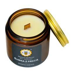 Pozwól sobie na chwilę słodkiego zapomnienia z wyjątkową świecą Śliwka z Frezją. To zapach, który otula jak ciepły, letni wieczór – pełen soczystych nut owoców i subtelnych, kwiatowych akcentów. Połączenie słodkiej śliwki z upojnym aromatem frezji oraz delikatną kroplą nut ambrowo-piżmowych tworzy kompozycję, która urzeka zmysły i koi duszę.